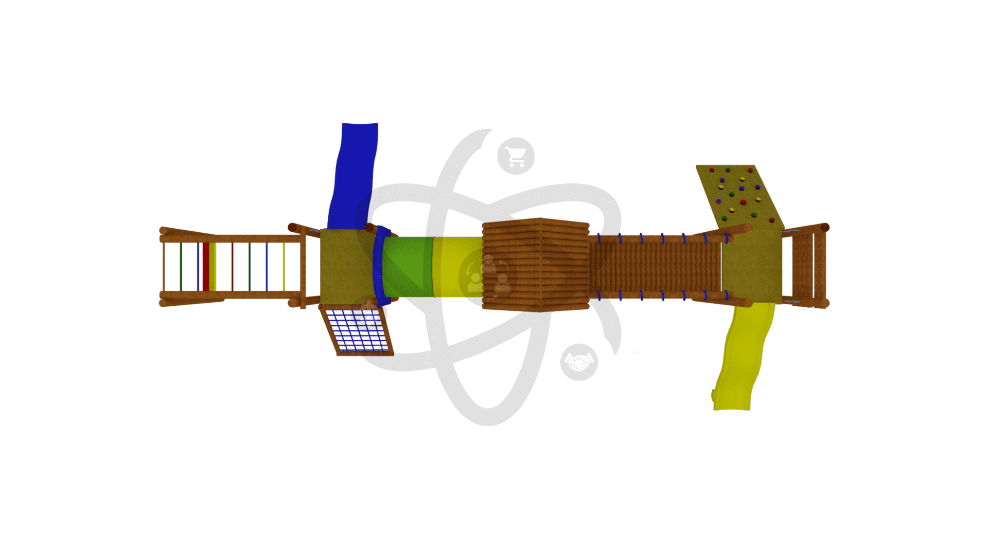 Nossos playgrounds de madeira são fabricados em tronco de eucalipto tratado por um processo de autoclave, dando assim uma melhor durabilidade para o madeiramento quando o mesmo esta exposto as condições climáticas.