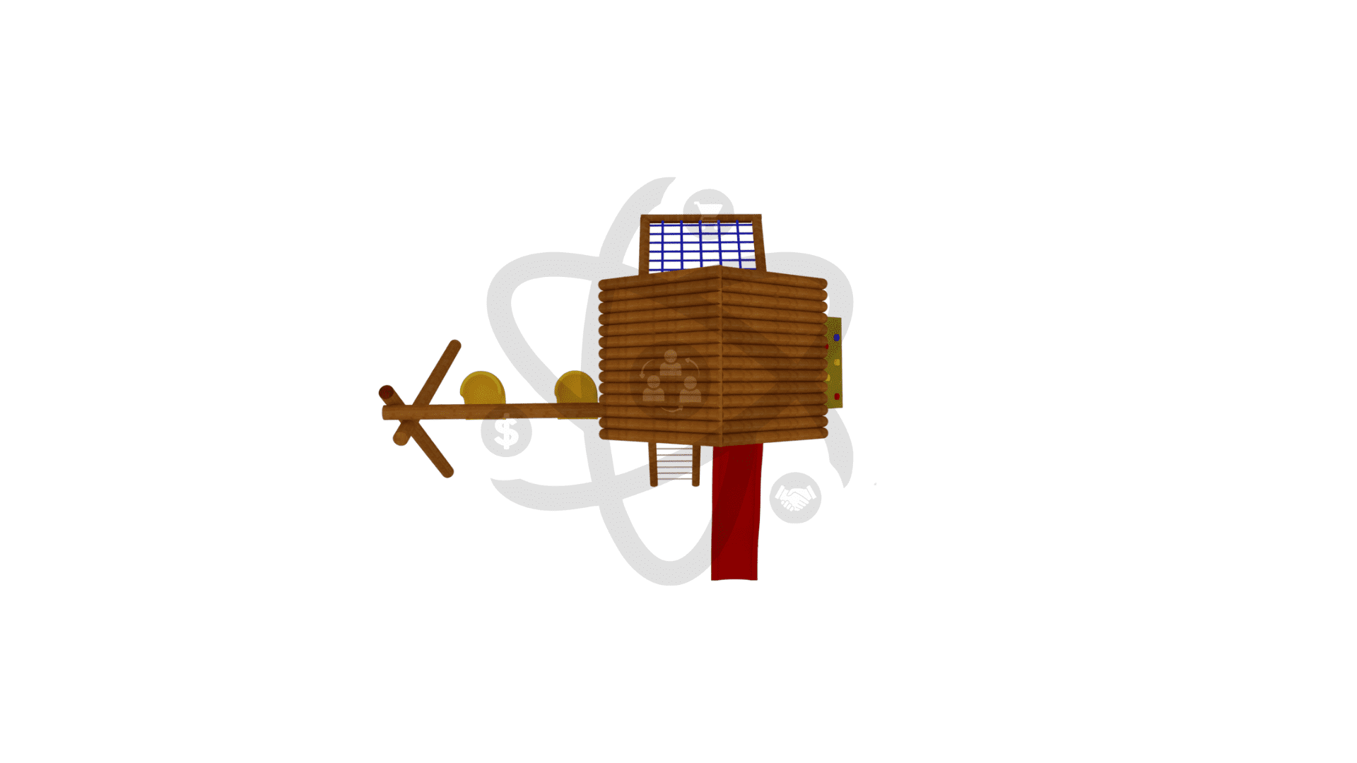 Nossos playgrounds de madeira são fabricados em tronco de eucalipto tratado por um processo de autoclave, dando assim uma melhor durabilidade para o madeiramento quando o mesmo esta exposto as condições climáticas.